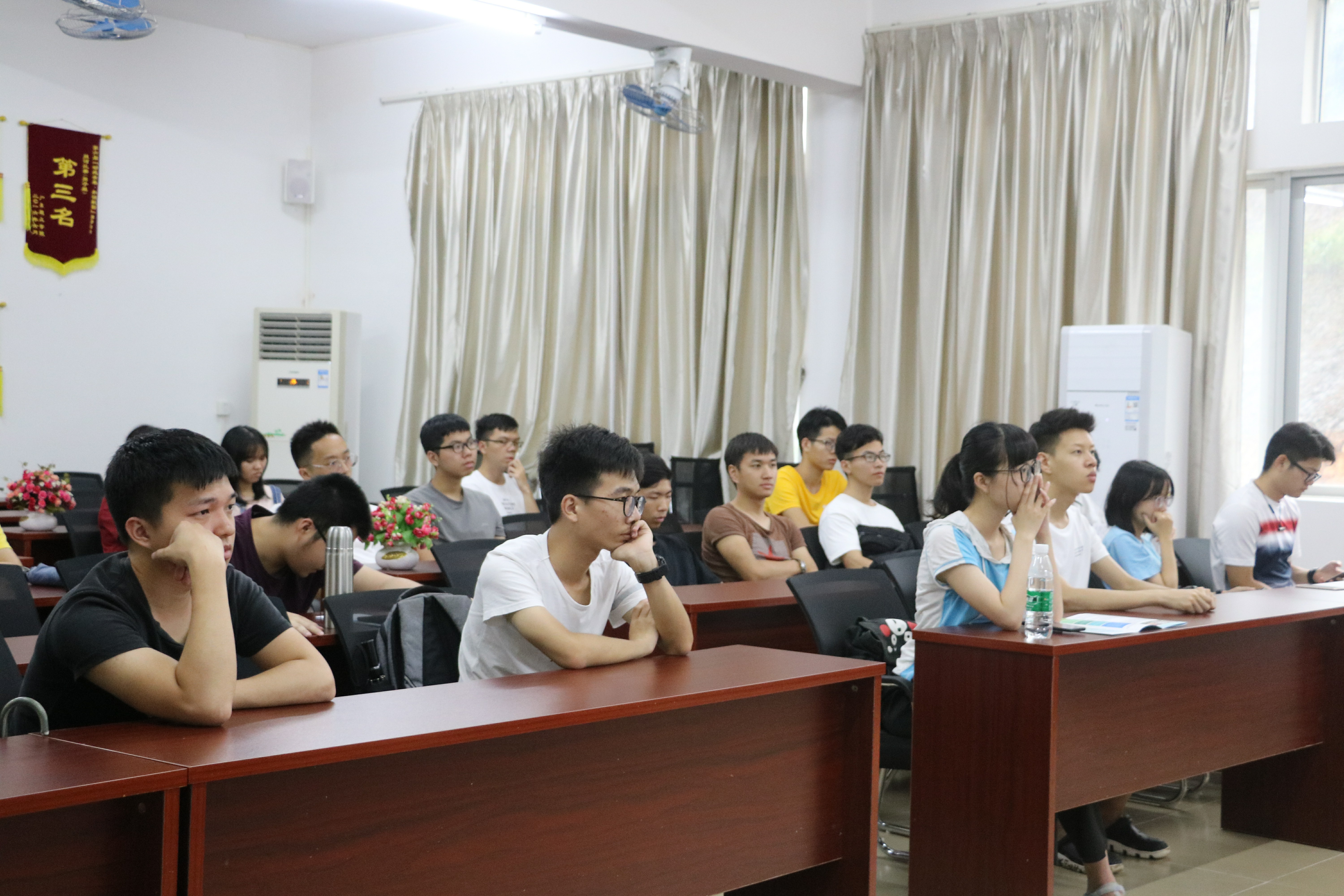 周咏梅教授与彭三城教授详细介绍了广东外语外贸大学的相关信息,该校是中国恢复研究生制度后较早获得硕士、博士授予权的单位之一。周咏梅教授与彭三城教授重点介绍了广东外语外贸大学的硕士专业,设有外国语言文学、应用经济学、统计学、网络空间安全等12个一级学科硕士点和46个二级学科硕士点。并为同学们分析了考研的形势与动态,鼓励同学们选择考研为将来更好的就业打下基础。同时,也向同学们传授了有关考研初试和复试的宝贵经验。会议结尾,梁星全书记发言鼓励大家积极考研,争取做一个高学历、高技能、高职称的现代高层次人才。