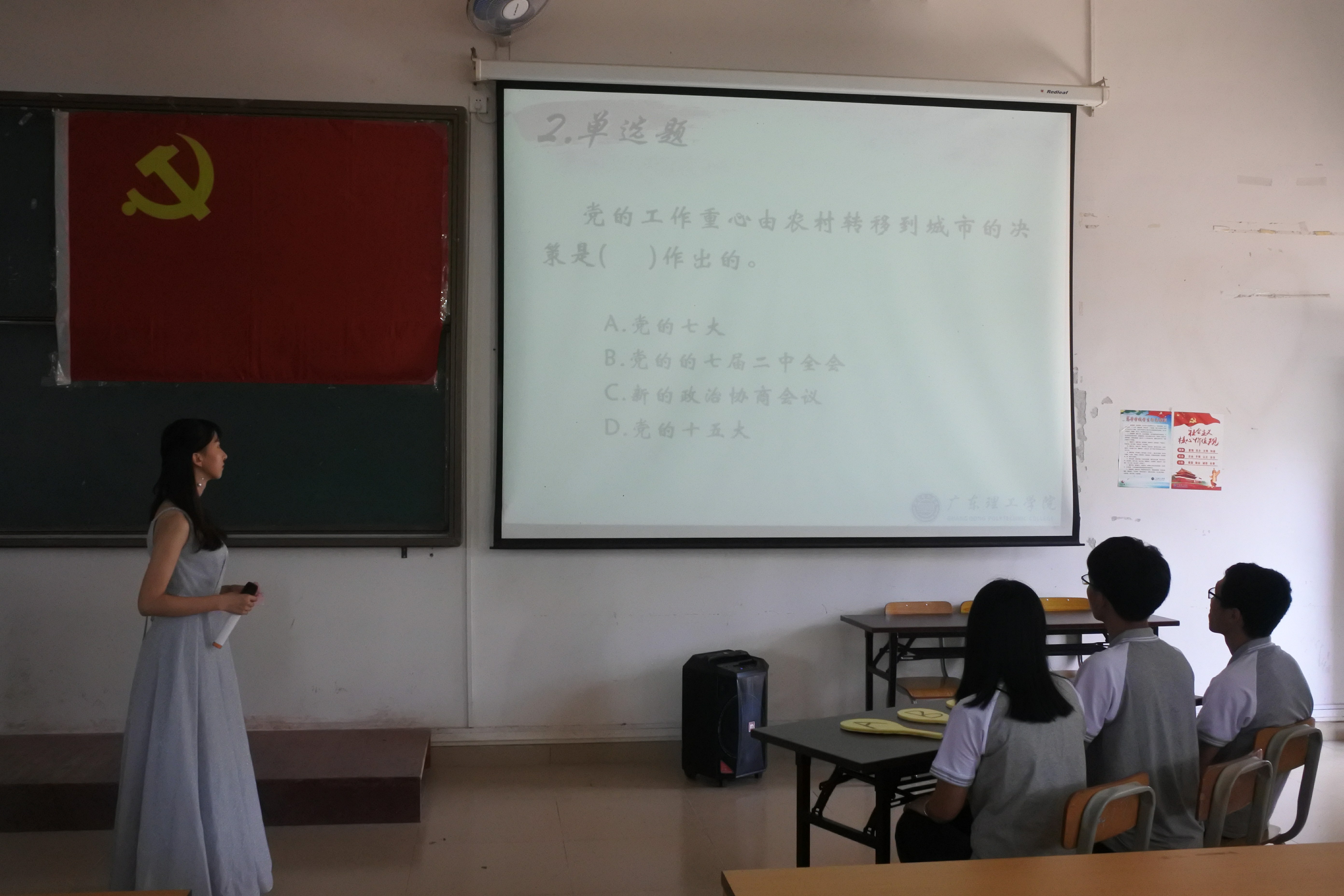 (本网讯 太阳成集团tyc9728 黄玉姿 梁启坡)为深入贯彻落实党的十九大和全国两会精神,增强老员工对党知识的了解,加深老员工思想政治教育。2019年5月16日15点整,太阳成集团tyc9728于振华楼401室举行第五届党知识挑战赛决赛。出席本次比赛的人员有公司党总支梁星全书记、员工党支部书记胡娇铃老师、辅导员杨波老师、黄锦波老师、陈旭茹老师、刘成老师、张任老师。本次比赛的参赛队伍是由初赛脱颖而出的24人组成的8支队伍。