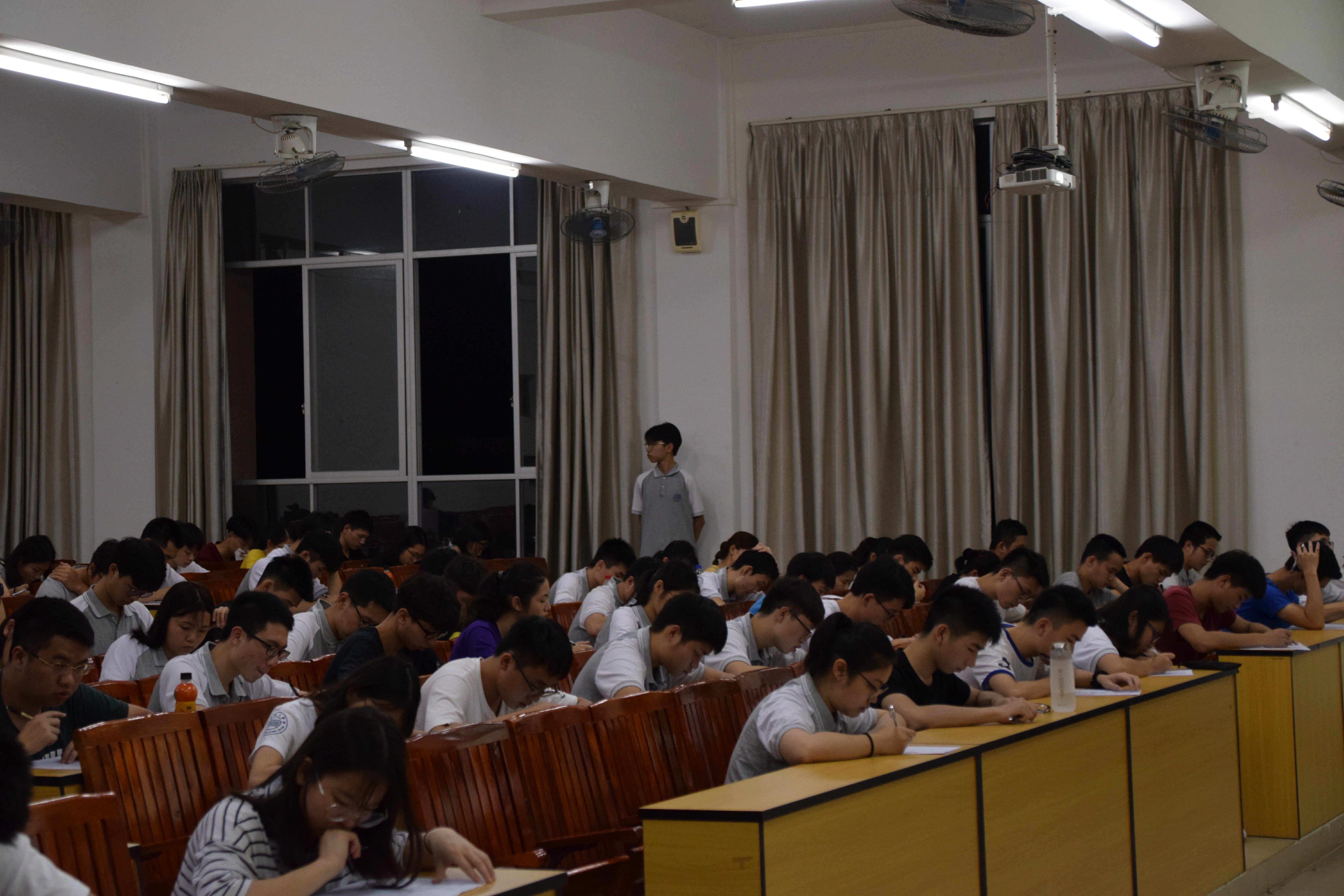 19:15分参赛选手开始陆续进入考场。本次挑战赛初赛采取笔试的形式进行考试,考试时间为1小时30分钟。宣读完规则后监考员开始分发试卷,19:30考试正式开始。考试期间,参赛选手全神贯注的作答。监考员们严格的维护考场纪律,确保让每位选手在公平公正的环境中专心作答。21点整考试结束。监考员将答卷收齐整理,在参赛选手有秩序全部离场后,评卷人员开始对各位选手的答卷进行批改。