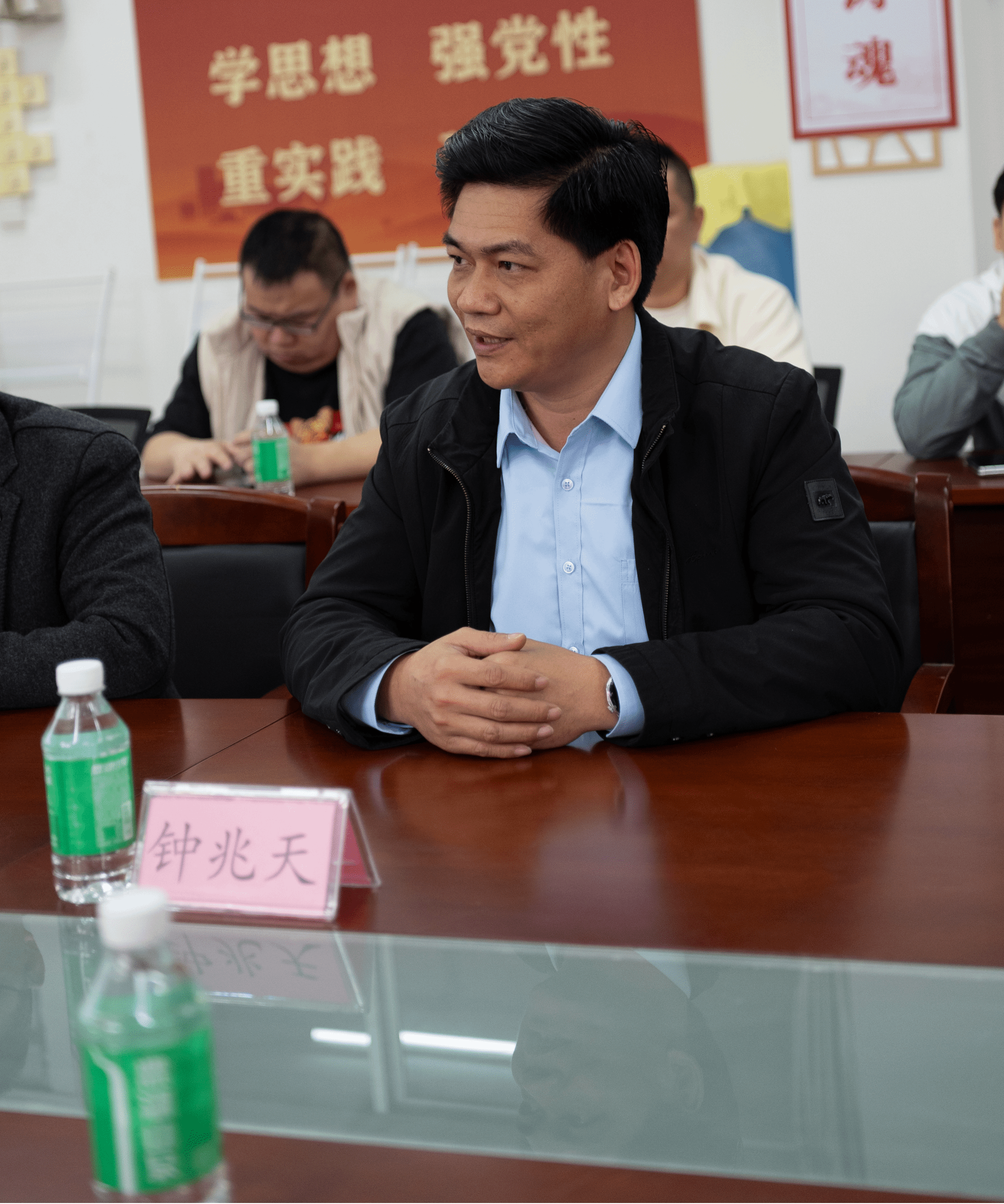 公司党总支书记钟兆天对各位领导的莅临指导表示热烈欢迎和衷心感谢。他强调,今天的会议不仅安排了挂牌仪式,而且议题深远、意义重大。关于地理标志性人才的沟通与建设,钟书记提出了从专业性和人才驿站建设两个维度进行深入探讨的想法,并提议借助学会的力量,与企业合作建立教学基地,为员工提供实践学习的机会。